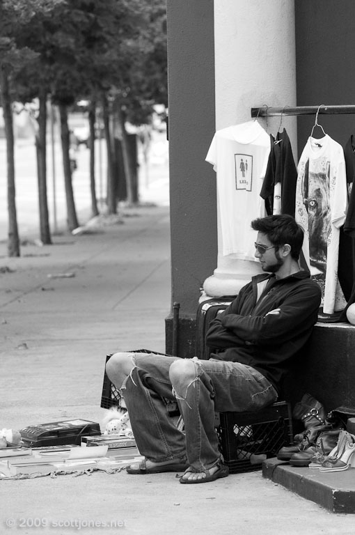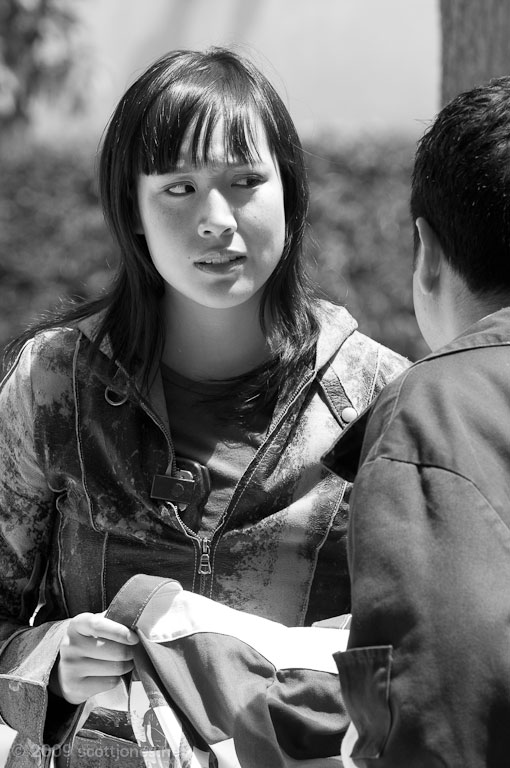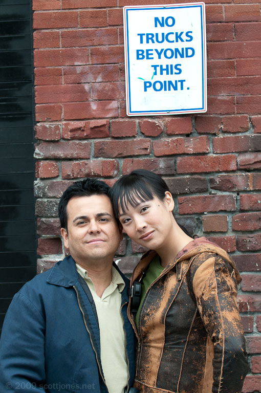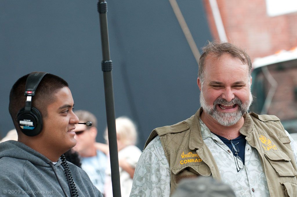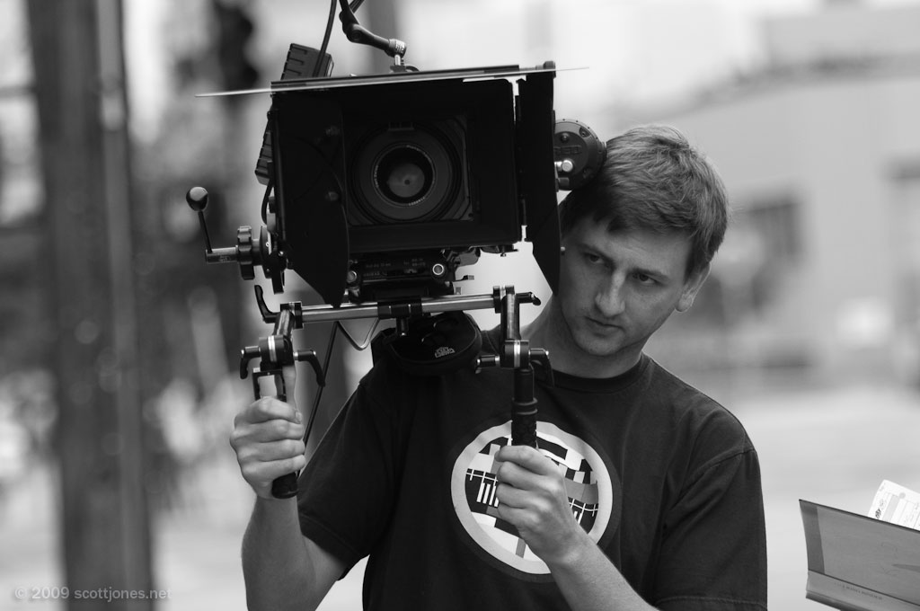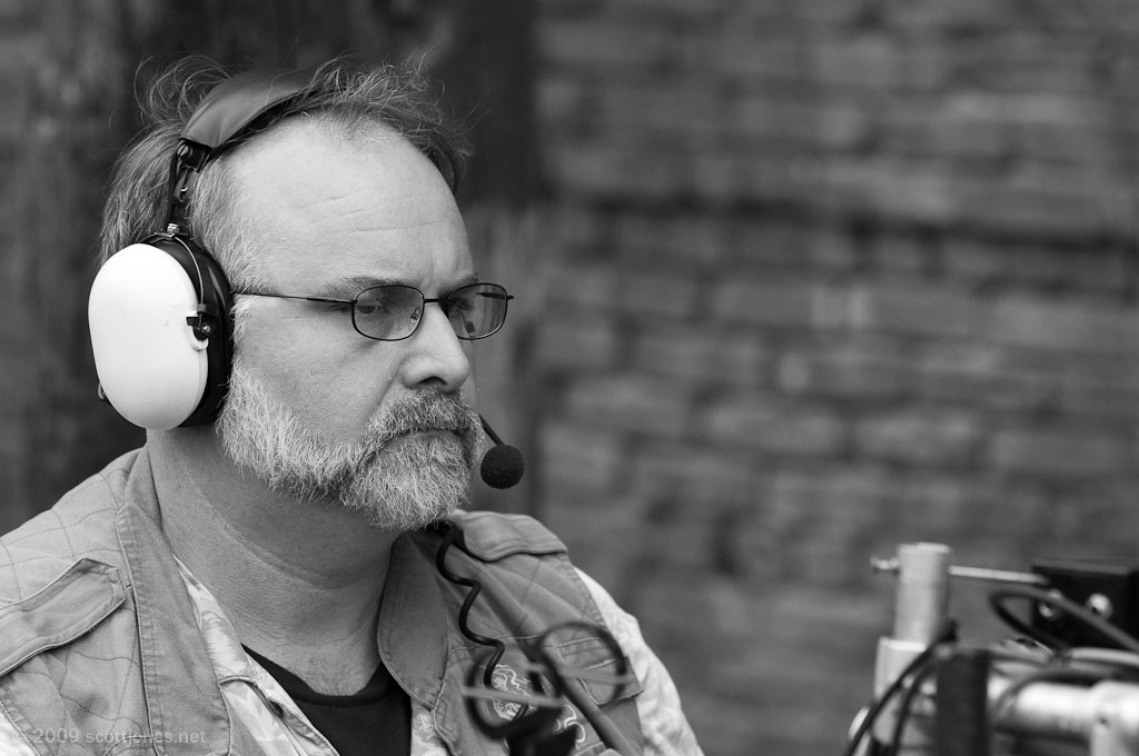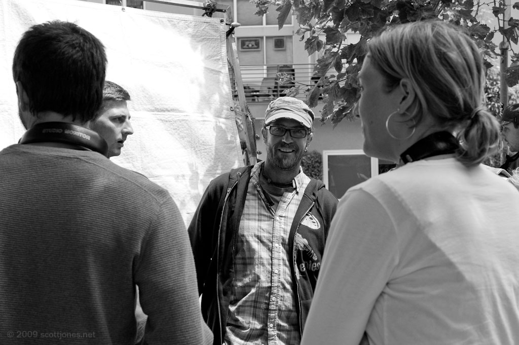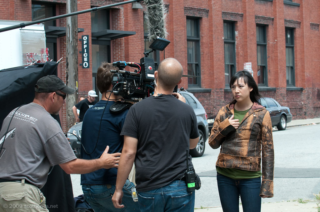 Despite all the honking we got a lot accomplished on Day 2 of principal photography. Wrapped the car stuff that was shooting in the morning and moved onto the plaza scene. A few crew members made some cameos as extras and we even had a guy on stilts. The plaza scene leads into the foot chase so we pulled off the first couple shots from that sequence. To wrap it all up we threw Joaquin into the Crown Vic and had him drive around for some shots from inside the car. He surprised everyone with his apparent aspirations to be a stunt driver. Luckily no crew members were harmed during the filming of that scene.